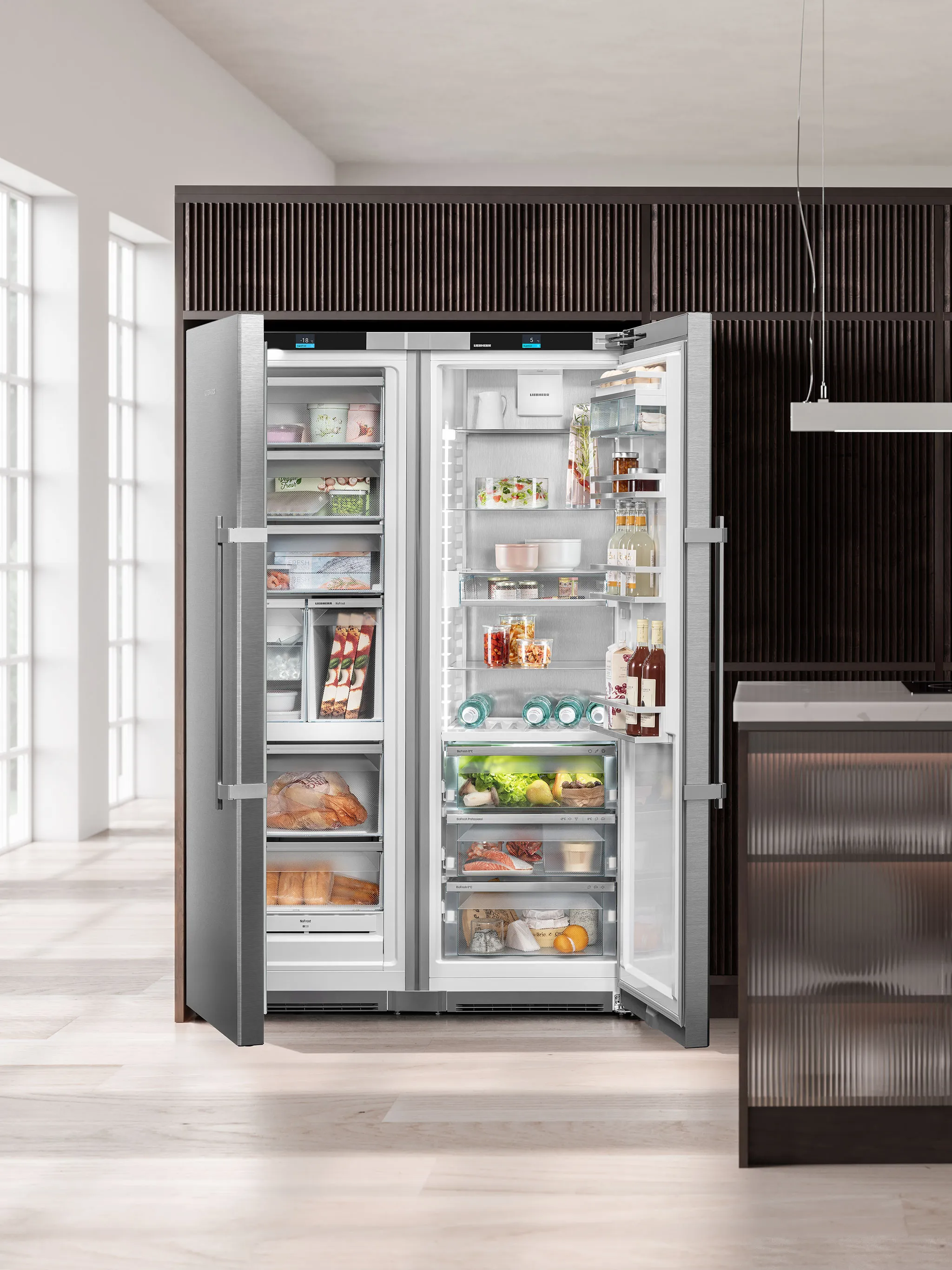 従来のBioFresh機能に加えて、新たにフィッシュ&シーフードトレイが付属された、BioFresh Professional室。独立したトレイ内で0℃、-2℃の温度管理が可能になりました。Dry/HydroSafeの使い分けで、バリエーション豊富な保存方法を実現します。