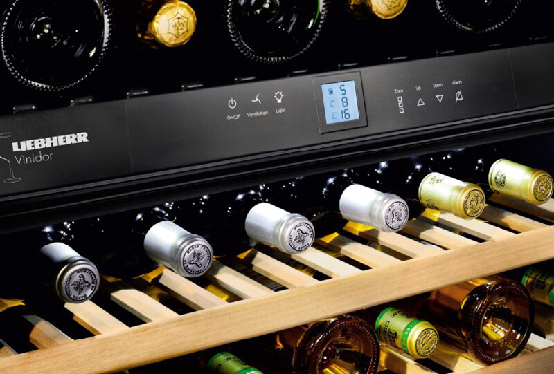 複数のゾーン毎に 5 ~ 20℃の温度範囲から1℃単位で設定を可能にする Vinidorシリーズ は赤ワイン、白ワイン、シャンパン等を最適な温度帯で同時に貯蔵できます。
